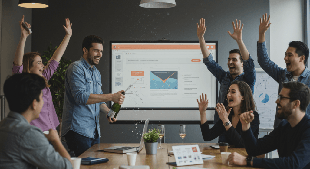 Kiedy wszystko jest gotowe – strona trafia na hosting, domena zostaje podpięta i… bum! Twoja strona oficjalnie istnieje w internecie. Możesz ją pokazać światu, wrzucić link na Facebooka, dodać do maila i zacząć działać online! A dla nas to sygnał, żeby odstawić komputer, usiąść wygodnie i otworzyć schłodzonego szampana. 🥂 Bo sukces Twojej strony to także nasz sukces – cieszymy się razem z Tobą, bo Twoje osiągnięcie to nasza satysfakcja!