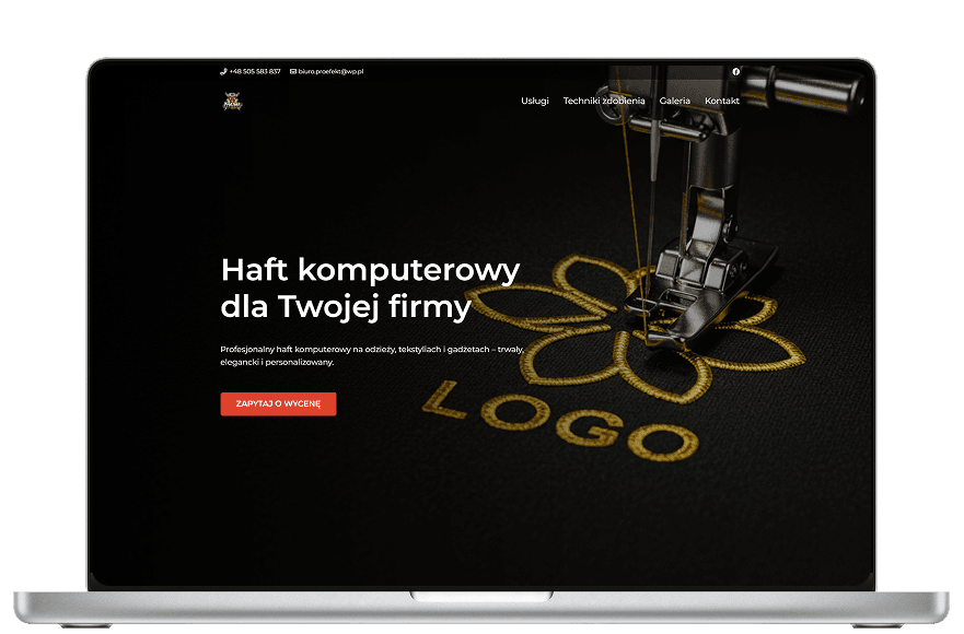 Firma ProEfekt, ekspert w hafcie komputerowym, potrzebowała strony, która podkreśli jakość, precyzję i profesjonalizm oferowanych usług.